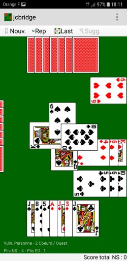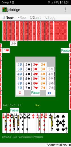 les enchères de Ouest, Nord et Est sont faites par l'ordinateur, les enchères de Sud sont faites par le joueur